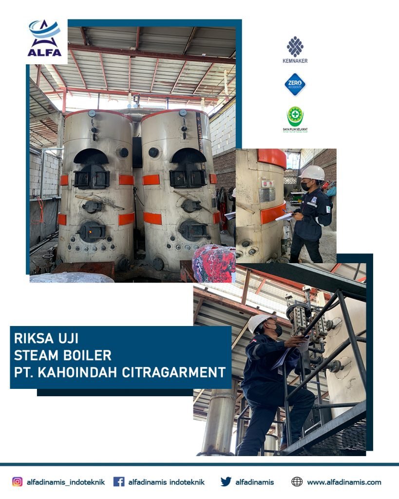 PT. Kahoindah Citragarment merupakan perusahaan garment yang berlokasi di Jl. Bali Blok. D/16 KBN Cakung Cilincing, Jakarta Utara – DKI Jakarta. Kami PJK3 PT. Alfa Dinamis Indo Teknik telah melakukan Pemeriksaan dan Pengujian beberapa alat / instalasi di perusahaan tersebut, salah satunya adalah Steam Boiler Steam Boiler adalah alat konversi energi yang mengubah air menjadi […]